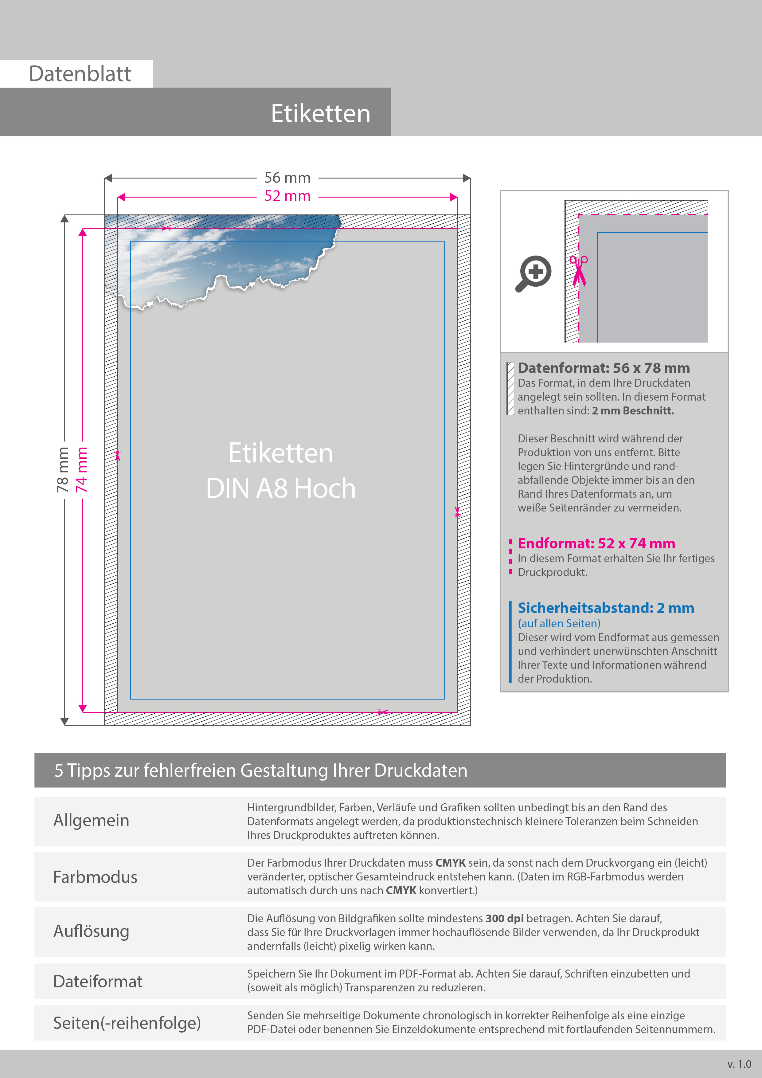 Nassleimetikett DIN A8 hoch (5,2 x 7,4 cm), 4/0-farbig bedruckt