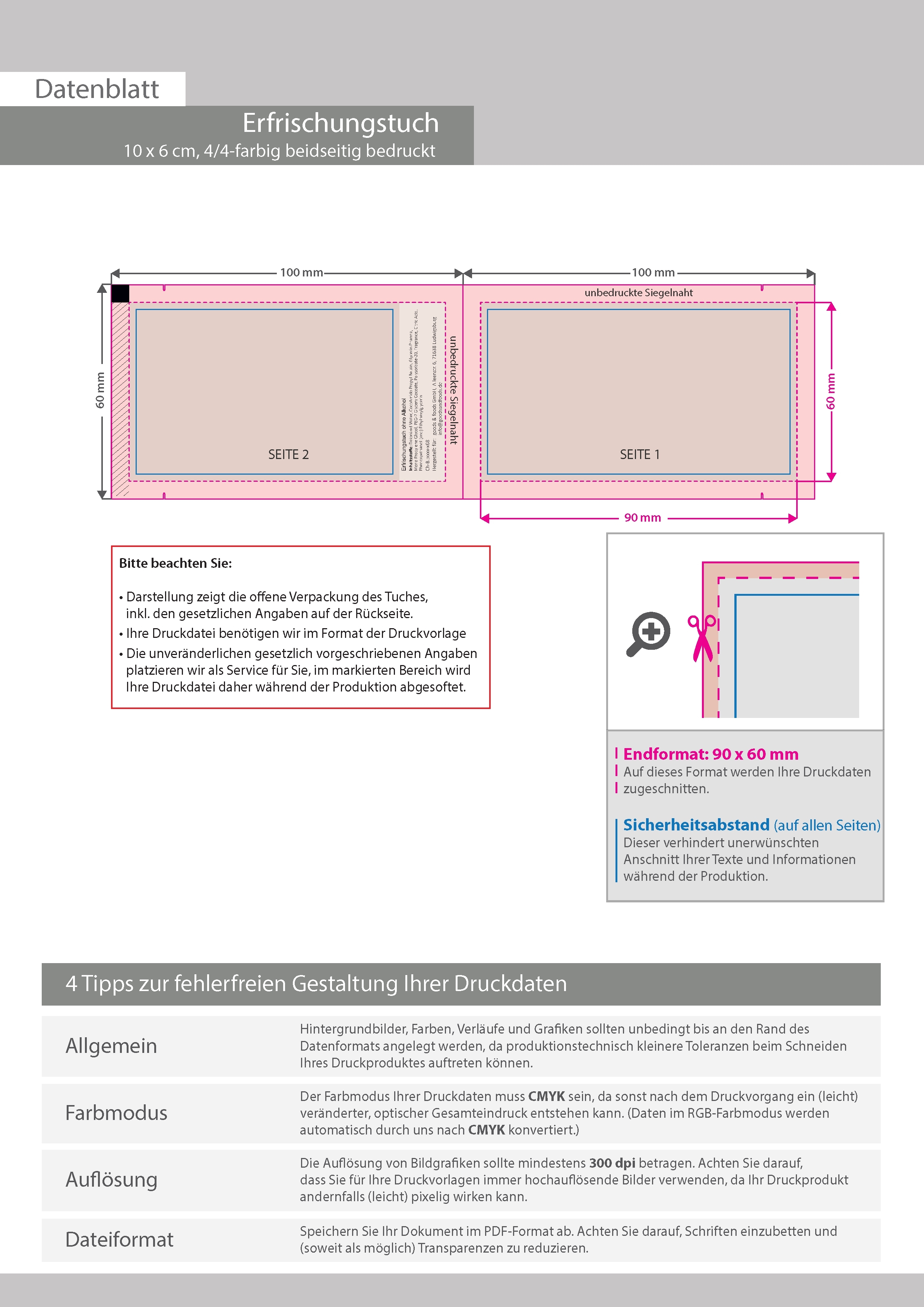 Erfrischungstuch, 10 x 7 cm, 4/4-farbig beidseitig bedruckt